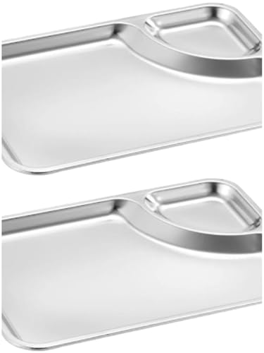 Generic - صينية وجبات خفيفة من الفولاذ المقاوم للصدأ، طبق بقسمين للمقبلات والصوصات والفواكه والتوابل، طبق تقديم طعام متين متعدد الأغراض للحفلات والتجمعات والاستخدام اليومي (فضي، 2 قطعة)