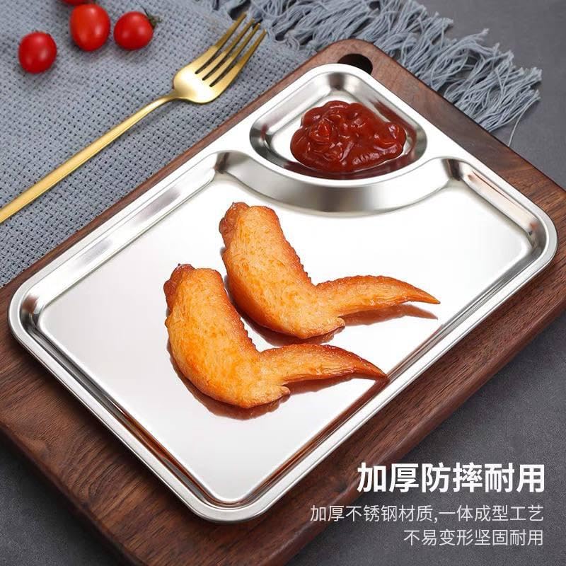 - صينية وجبات خفيفة مكونة من قسمين: طبق عملي من الستانلس ستيل مع قسمين لتقديم المكسرات أو الغمس أو الصلصات أو الفواكه أو الوجبات الخفيفة الصغيرة بطريقة أنيقة ومنظمة.