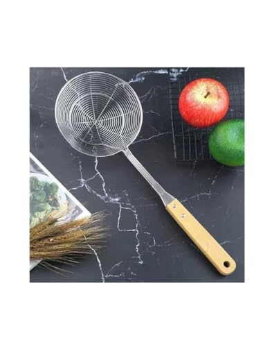 generic - مصفاة فاخرة من الستانلس ستيل بمقبض خشبي - مصفاة مطبخ متعددة الاغراض للطبخ والقلي، امنة للاستخدام في غسالة الصحون (مقاس S)