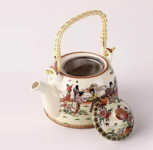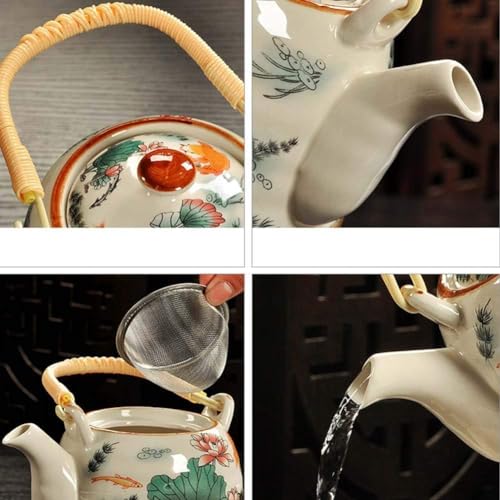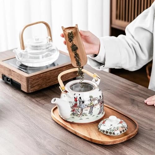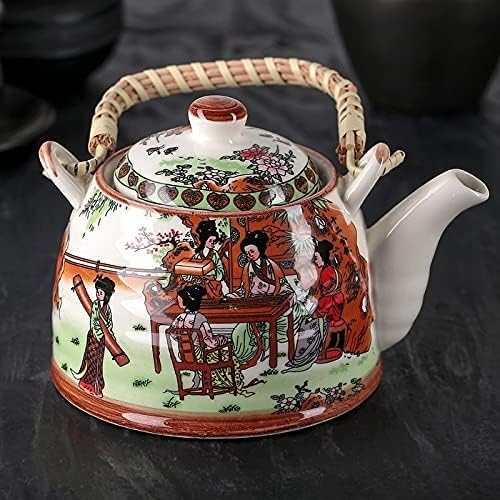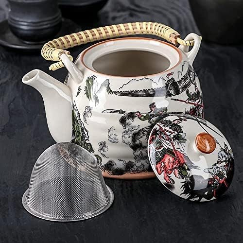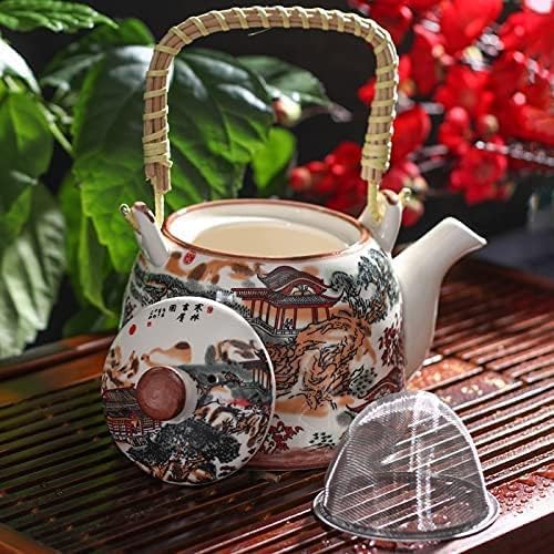 Generic - إبريق شاي من البورسلين بتصميم تقليدي أنيق مع مصفاة من الفولاذ المقاوم للصدأ مزين بنقوش فنية صينية ومقبض من الراتان، مناسب لتحضير أوراق الشاي السائبة، سعة 1.5 لتر