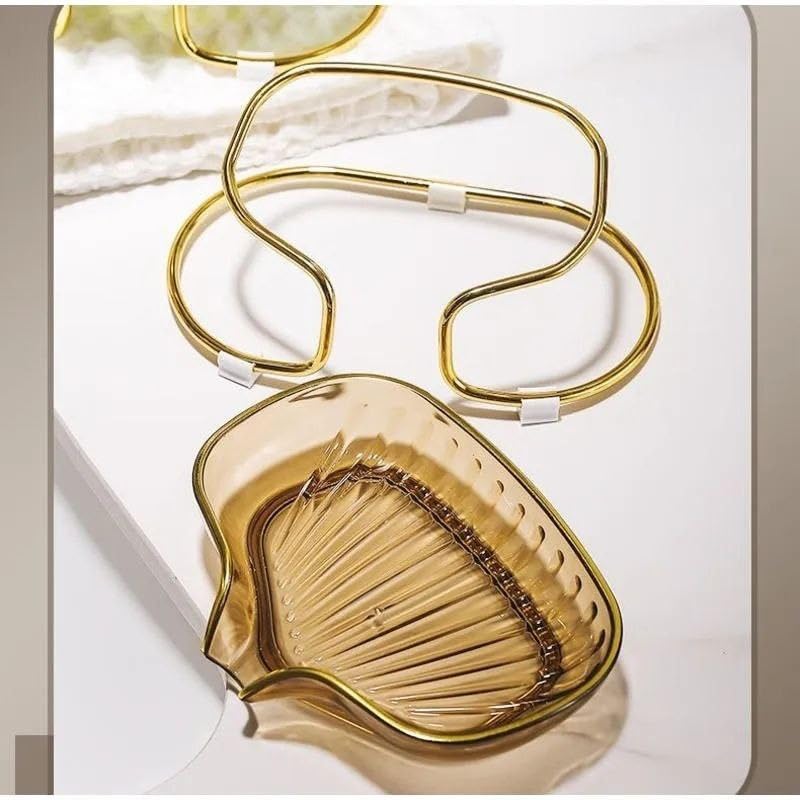 Generic - صبانة أكريليك شفافة مع حامل معدني ذهبي للحمام والمطبخ، منظم للمطبخ مع تصريف للمياه، اكسسوار منزلي أنيق ومتين