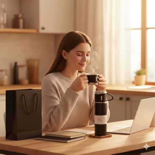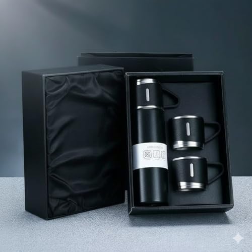 Generic - طقم ترمس وكوب فاخر معزول بتفريغ الهواء - معزول مع 2 كوب متطابقين + صندوق هدايا - مثالي للقهوة والشاي والسفر - متعدد الألوان (معزول)