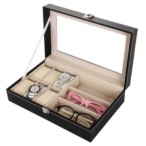Generic - صندوق تخزين ساعات ونظارات فاخر - 9 خانات منظمة مع قاعدة مبطنة | حافظ على اكسسواراتك منظمة وآمنة من الضياع والخدوش