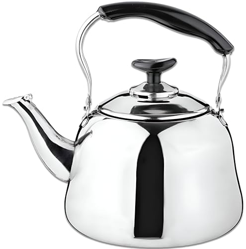 Generic - ابريق شاي صفيرية فاخرة، سعة كبيرة، مصنوعة من الفولاذ المقاوم للصدأ، مقبض مقاوم للحرارة، وحماية ضد الحروق للتخمير المنزلي استانليس عالي الجودة (2 لتر)