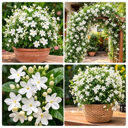 Generic - نبات الياسمين الابيض الفاخر - كرمة تسلق سريعة النمو مع زهور عطرية على شكل نجمة للحديقة والفناء والشرفة
