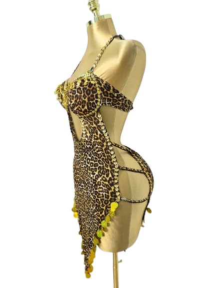 Generic - بدلة رقص نسائية فاخرة بخامة ليكرا زبدة ناعمة مزينة بطبقات الترتل – تصميم أنيق ومريح – فري سايز يناسب من 50 إلى 85 كجم
