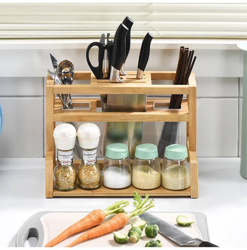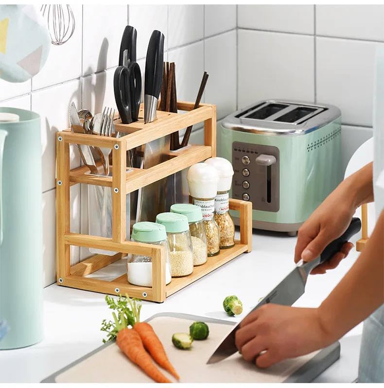 - هيكل متين يدوم طويلاً: مصنوع من خشب طبيعي معالج مقاوم للتآكل والرطوبة، مما يجعله مثاليًا للاستخدام اليومي في بيئة المطبخ.