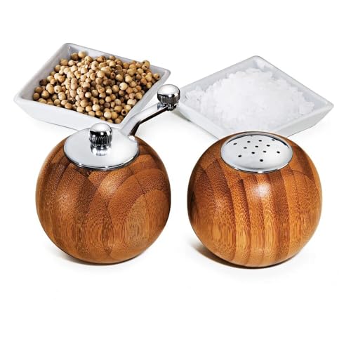 Generic - طقم ملح وفلفل خشبي فاخر – مطحنة فلفل يدوية + مِلّحة خشب دائرية – تصميم أنيق للمطبخ وطاولة الطعام – خامات عالية الجودة وسهلة الاستخدام