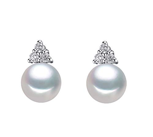 PremiumPearl - اقراط اذن انيقة مرصعة بلؤلؤ المياه العذبة الابيض 9-9.5 ملم بجودة ايه من الفضة الاسترلينية مع زركونيا مكعب - لؤلؤ فاخر فضي بريميوم بيرل للنساء