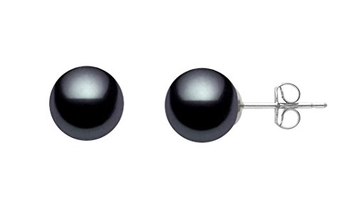 PremiumPearl - اقراط مرصعة باللؤلؤ الاسود المستزرع في المياه العذبة للنساء من الفضة الاسترليني بجودة ايه - لؤلؤ ممتاز معدني بريميوم بيرل متعدد الألوان