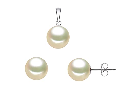PremiumPearl - مجموعة حلقان وقلادات من لؤلؤ المياه العذبة الانيق للنساء الفضة الاسترلينية بجودة AAAA كريم اكويا بريميوم بيرل متعدد الألوان