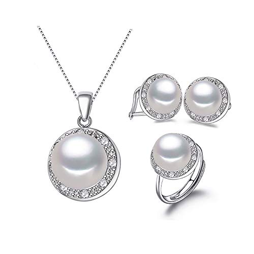 PremiumPearl - طقم دلاية وحلق وخاتم من فضة استرلينية ولؤلؤ مياه عذبة عالي الجودة AAAA بريميوم بيرل ابيض لؤلؤ للنساء