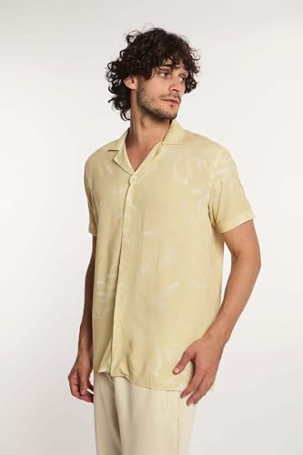 Premoda - قميص فسكوز فانسي بقصة عادية وأكمام قصيرة للرجال من برمودا، PRMxx002571
