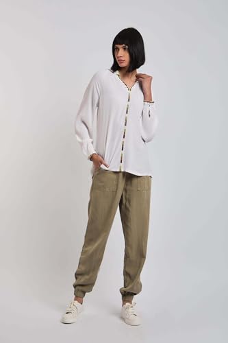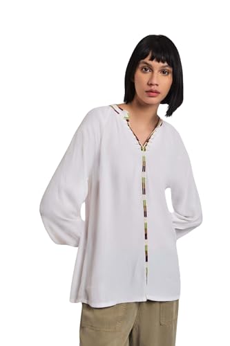 Premoda - بلوزة برقبة على شكل حرف V وأكمام طويلة للنساء من بريمودا، أبيض، XXL