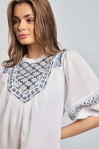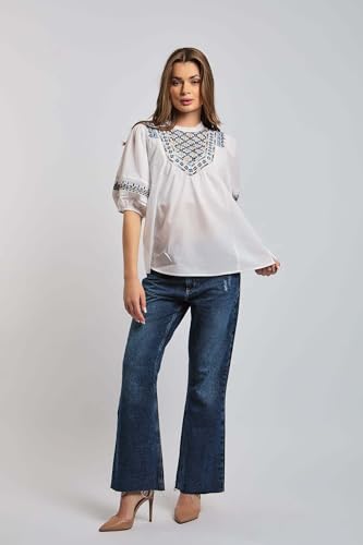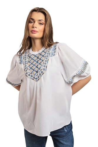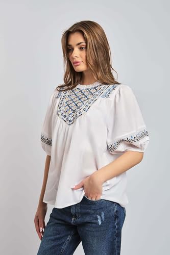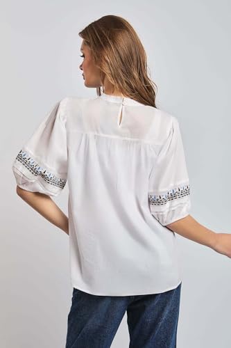 Premoda - بلوزة فانسي بأكمام قصيرة ورقبة دائرية ضيقة للنساء PRWxx003082 عصرية من بريمودا