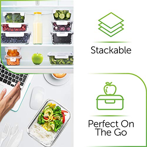 - حاويات إعداد الوجبات الزجاجية بمساحة تخزين واحدة مع أغطية قفل سمارت ستلوك تضمن تخزين الطعام مانع للتسرب دون انسكابات.