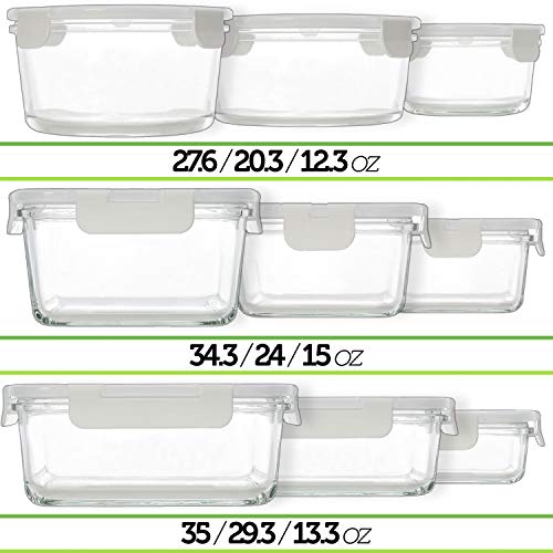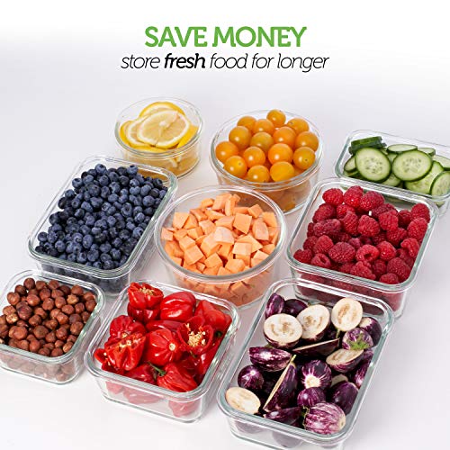 - 18 قطعة من حاويات تخزين الطعام الزجاجية - أفضل مجموعة قيمة يمكنك العثور عليها على أمازون. تحتوي هذه المجموعة على 9 حاويات طعام زجاجية بأحجام مختلفة و9 أغطية. حافظ على صحتك ووفر الوقت من خلال طهي وجباتك وتجميدها لوقت لاحق مع حاويات الفريزر الخالية من البيسفينول ايه.