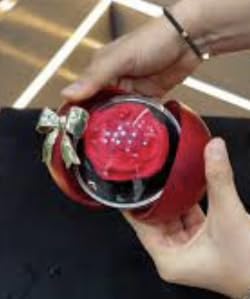 - تصميم فريد: وردة حمراء محفوظة في حافظة زجاجية أنيقة مع غطاء ذهبي على شكل تفاحة