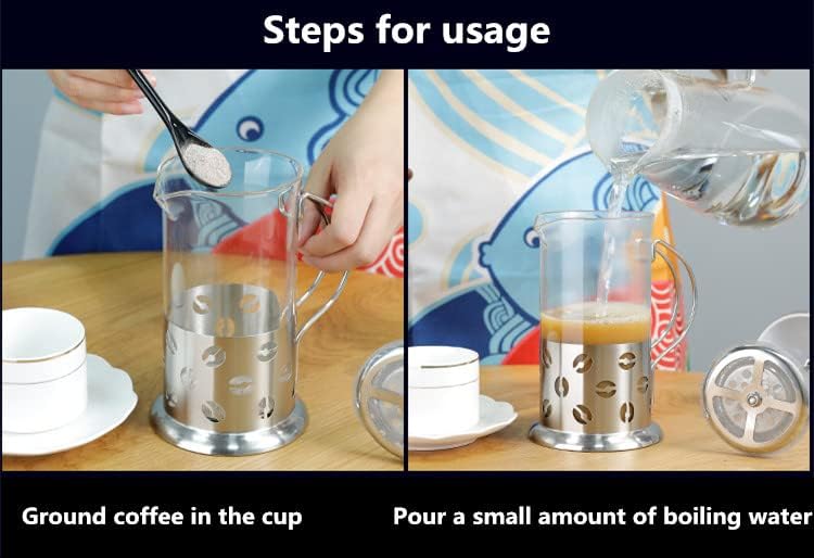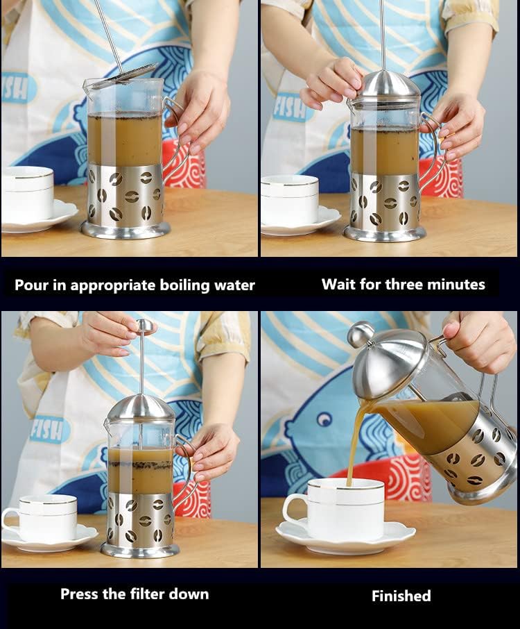 Generic - ماكينة تحضير القهوة بالضغط مكبس قهوة معزول من الستانلس ستيل كنكة البوروسيليكات السميك المقاوم للحرارة للتخييم في الهواء الطلق والسفر 350 مل شكل 4 فضي