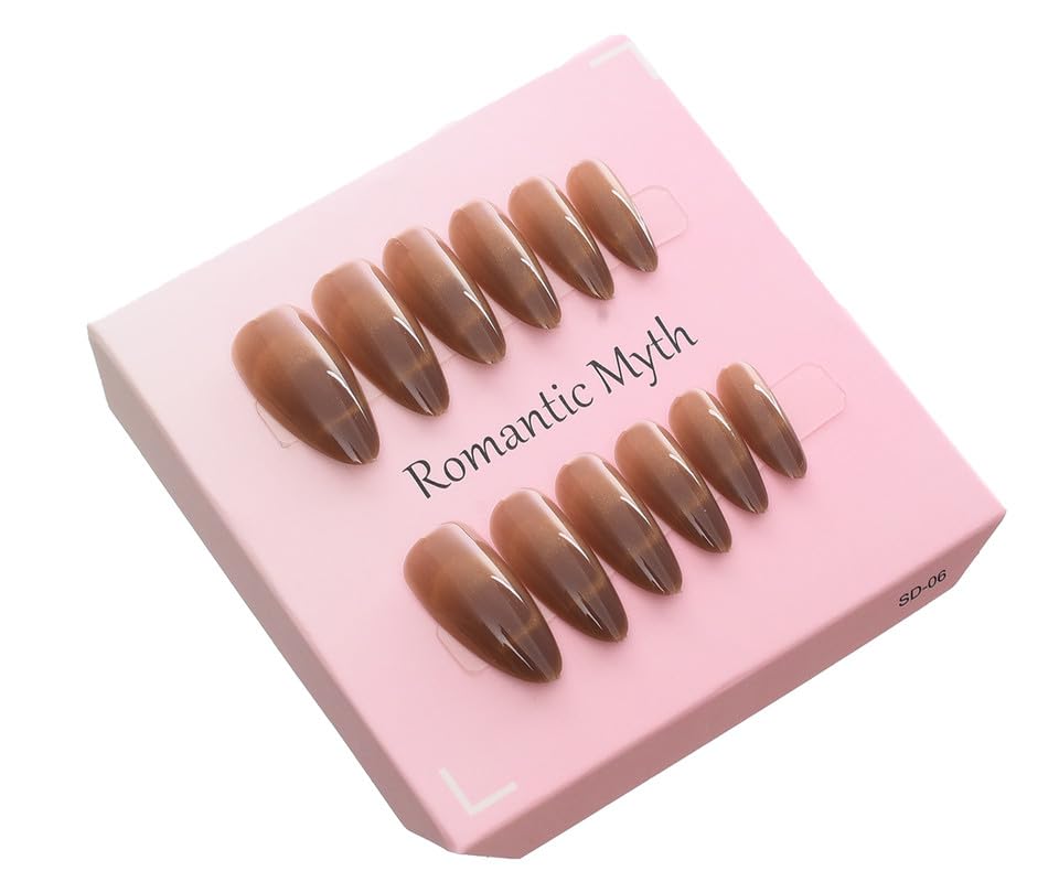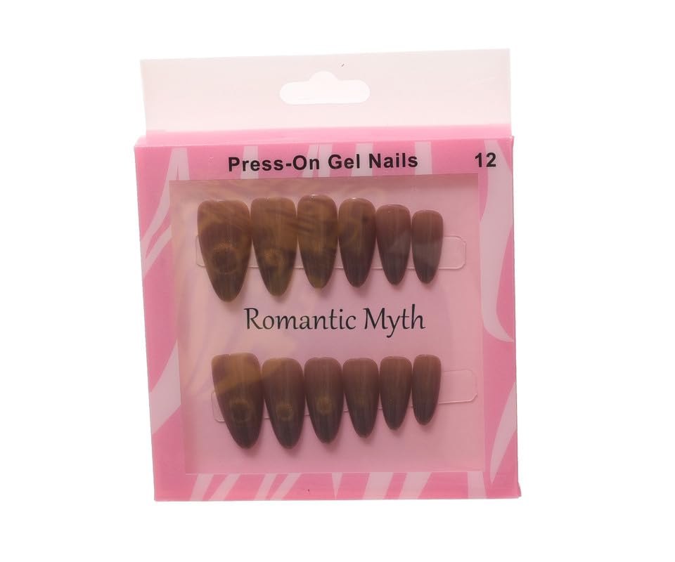 Generic - أظافر تركيب عن طريق الضغط متوسطة الطول وسهلة التركيب مثالية للحفلات تأتي مع ورقة لاصقة مزدوجة الوجه، عبوة من 12 قطعة، لون بني غامق