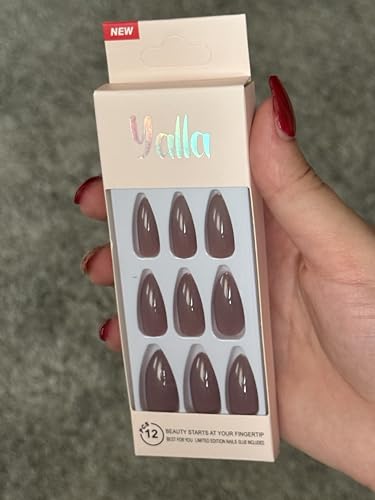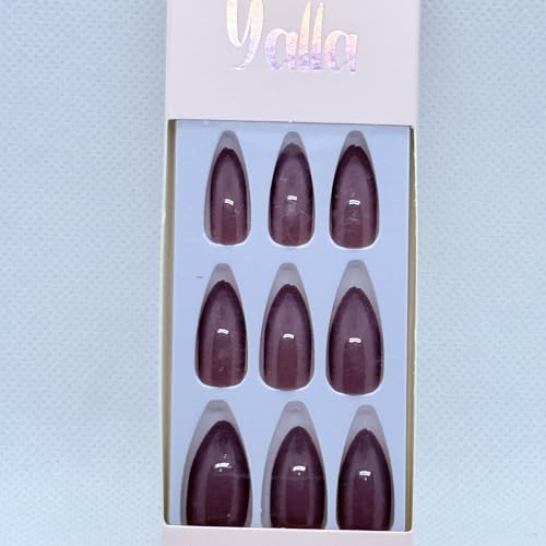 Generic - أظافر تركيب عن طريق الضغط بشكل لوزي، أظافر صناعية بطول قصير إلى متوسط، سهلة التركيب لمظهر احترافي، طقم مكون من 9 ألوان سادة (بنفسجي/أرجواني)