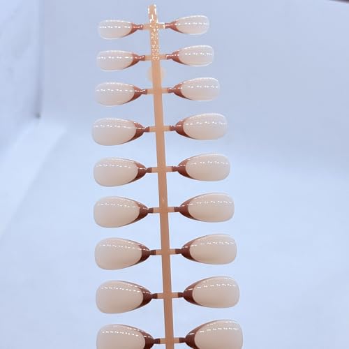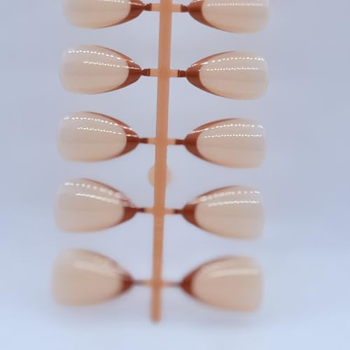 Generic - طقم أظافر صناعية لوزية الشكل مع أطراف فرنسية ملونة، 12 لونًا مختلفًا بلمسة صالونات ولامعة للنساء، بني (Caffe)