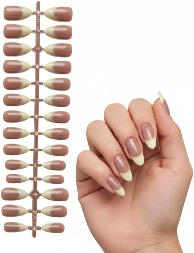 Generic - أظافر تركيب صناعية عن طريق الضغط بطول متوسط ولون بنى لامع أظافر مزيفة مثالية للحفلات تأتي مع ورقة مزدوجة الوجه واحدة، 24 قطعة، N8