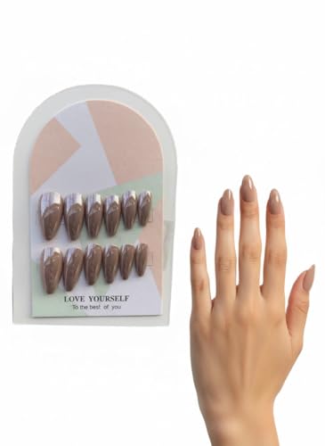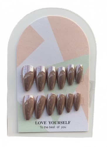 Generic - أظافر تركيب بلمسة عاكسة بلون معدني من 12 قطعة، طول متوسط إلى طويل، أظافر صناعية للحفلات، تأتي مع ورقة واحدة من اللاصق مزدوج الأوجه، N10