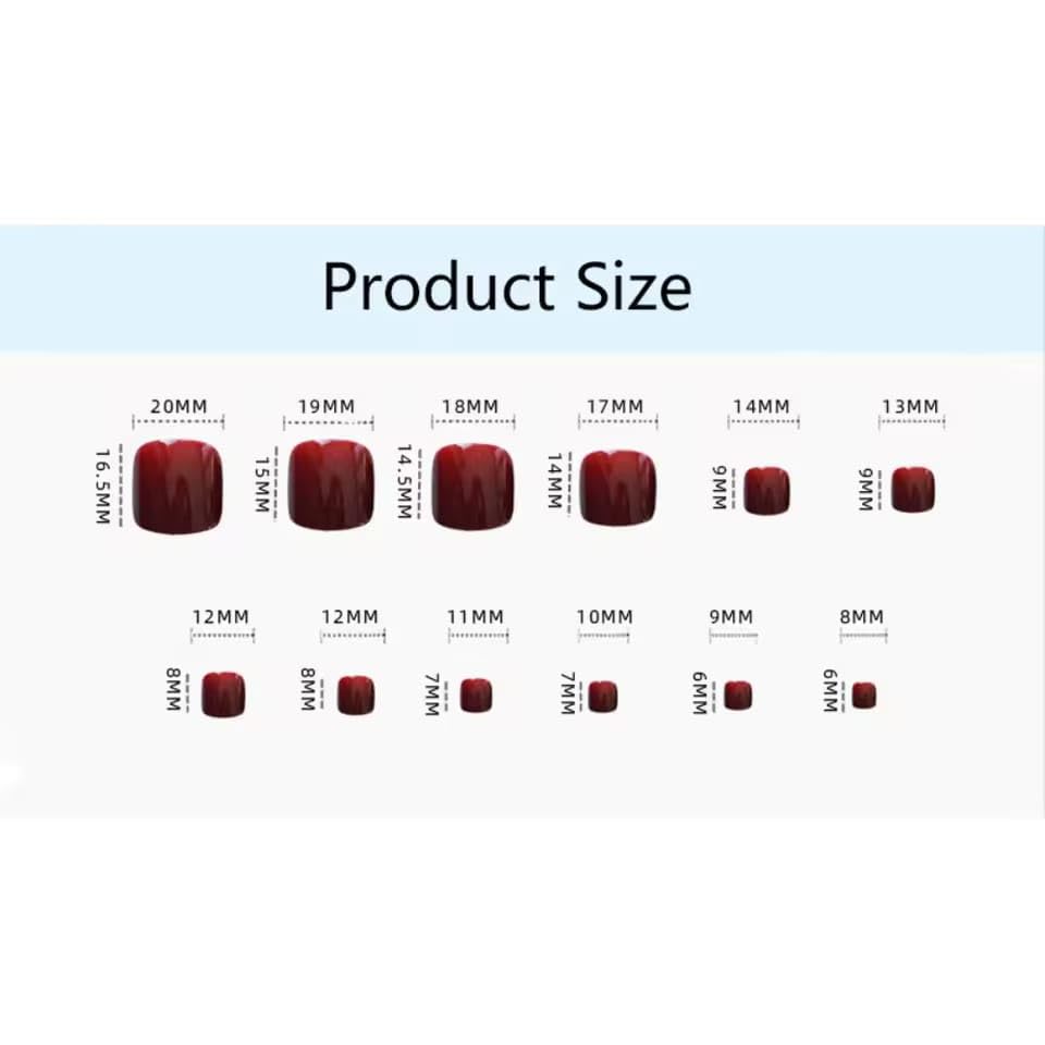 - مجموعة كاملة: تتضمن 22 مسمار أصابع القدم بالضغط بأحجام مختلفة لضمان ملاءمة مثالية لجميع أصابع القدم، مما يوفر تغطية كاملة لمظهر باديكير مصقول