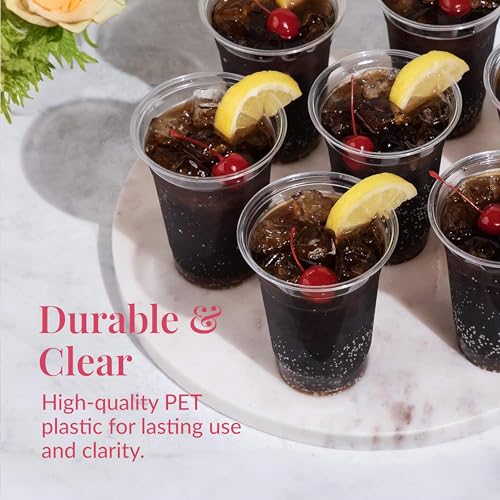 - متينة ومقاومة للتشقق: مصنوعة من مادة بي اي تي الممتازة، توفر هذه الأكواب البلاستيكية الشفافة تثبيتًا قويًا مانع للتسرب لكل من المشروبات والوجبات الخفيفة؛ رائعة لكل من المناسبات الكاجوال والراقية