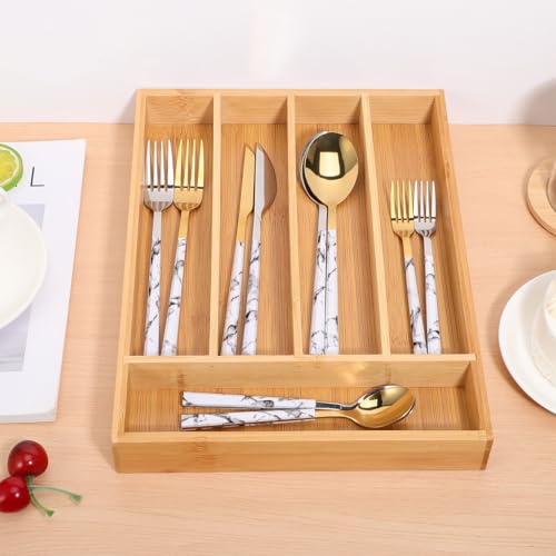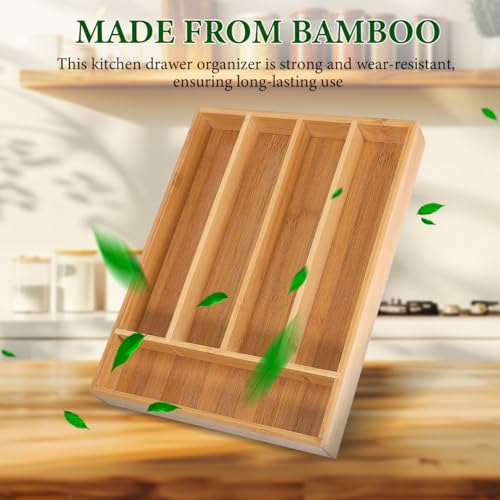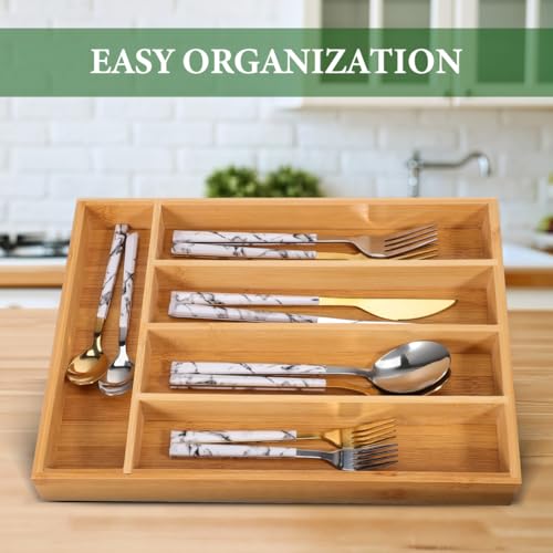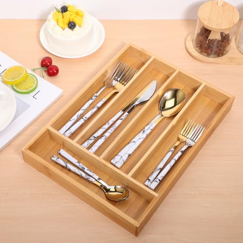 - تنظيم سهل: بسط تخزين مطبخك مع منظم الأدراج المصنوع من البامبو، ليمنحك طريقة عملية لترتيب أدوات المطبخ وأدوات المائدة بشكل أنيق ومنظم.