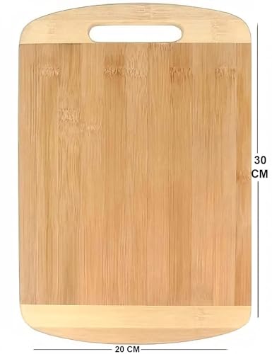 PRIFRA - لوح تقطيع خشبي من الخيزران للمطبخ بسطح مضاد للبكتيريا مع مقبض من الستانلس ستيل، لوح تقطيع خضروات للمطبخ، خال من البيسفينول ايه، لوح تقطيع امن للغسل في غسالة الصحون (30 × 20 خشبي)