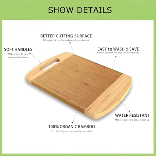 - صديقة للبيئة وخفيفة الوزن: لوح التقطيع الكبير عضوي بنسبة 100% وطبيعي لذلك فهو آمن للاستخدام اليومي ولن يبلى سكاكينك أبدًا. بمجرد الاستخدام، اغسلها بالماء والصابون وامسحها لتنظيفها بسرعة. تجنب نقعها في الماء لإطالة عمر لوح التقطيع للمطبخ. بفضل المقبض المريح، يسهل التقاط لوح التقطيع الخشبي الكبير وتحريكه وتعليقه لتوفير المساحة في المطبخ.