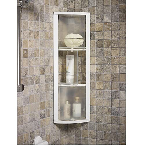 Primanova - منظم لتخزين مستلزمات الحمام مصنوع من البلاستيك الصلب- بلون ابيض مع زجاج شفاف بريمانوفا