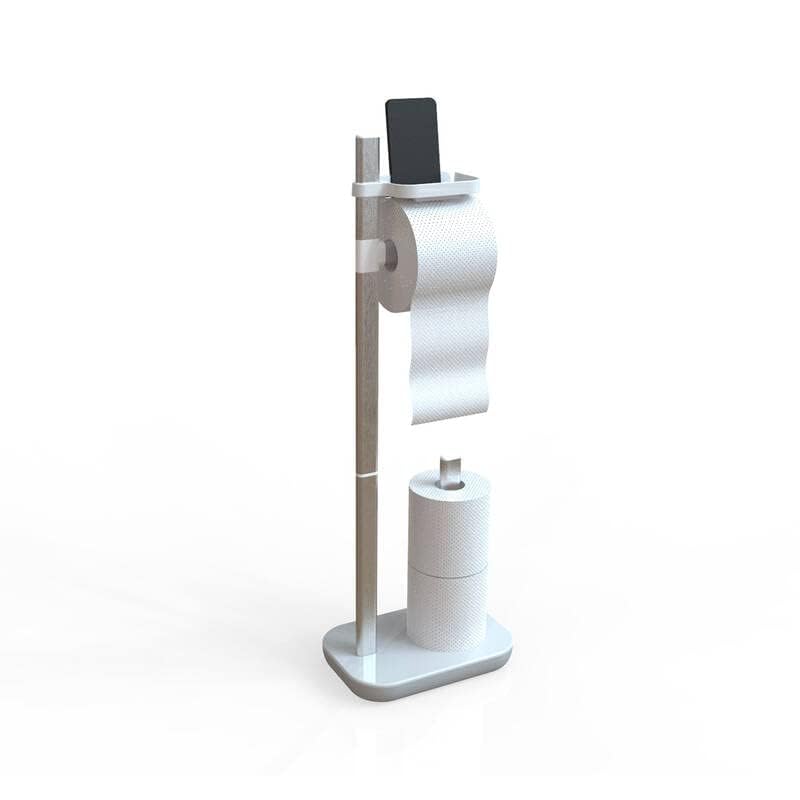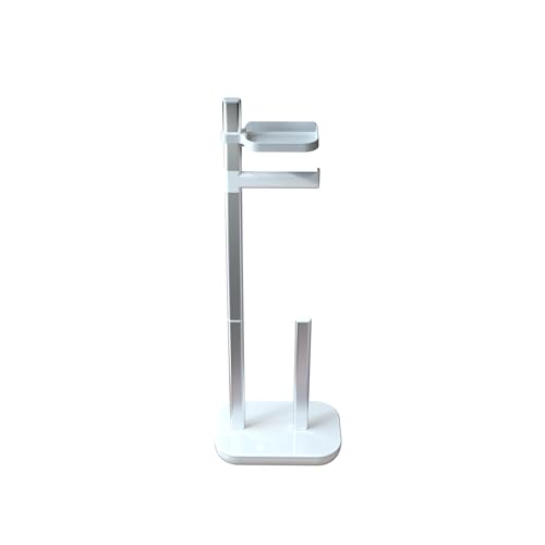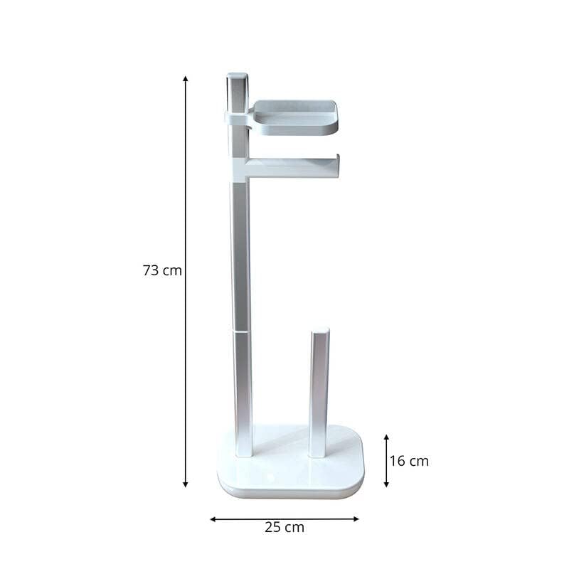 Primanova - حامل مناديل تواليت من البلاستيك والالومنيوم قائم بذاته مع رف للجوال او الاشياء الاخرى، بكرتين احتياطيتين قابلين للتكديس، 73 × 25 × 16 سم، ابيض من بريمانوفا