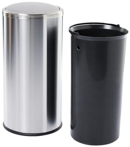 Primanova - بريمانوفا سلة مهملات بغطاء متارجح سعة 30 لتر من الستانلس ستيل 430 كلفن مع دلو داخلي للاستخدام في منزلك تحت المكتب والمكتب وغرفة النوم والحمام فيتا أبيض
