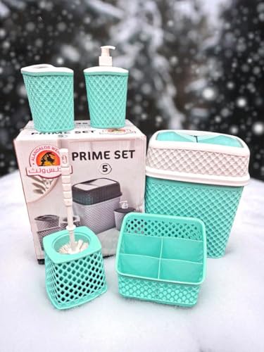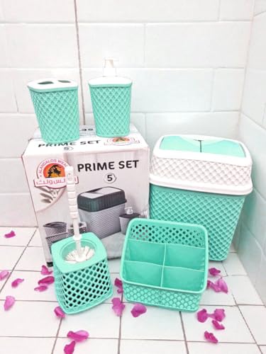 generic - طقم حمام برايم 5 قطع مع سلة قابلة للطي ومنظم وحامل فرشاة اسنان ومعجون اسنان وفرشاة مرحاض وموزع صابون
