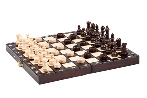 Prime Chess - مجموعة ألعاب خشبية الشطرنج والطاولة والداما 3 في 1 - مقاس صغير