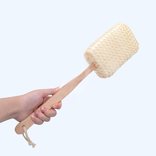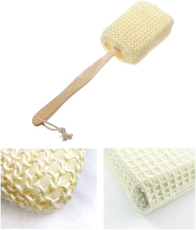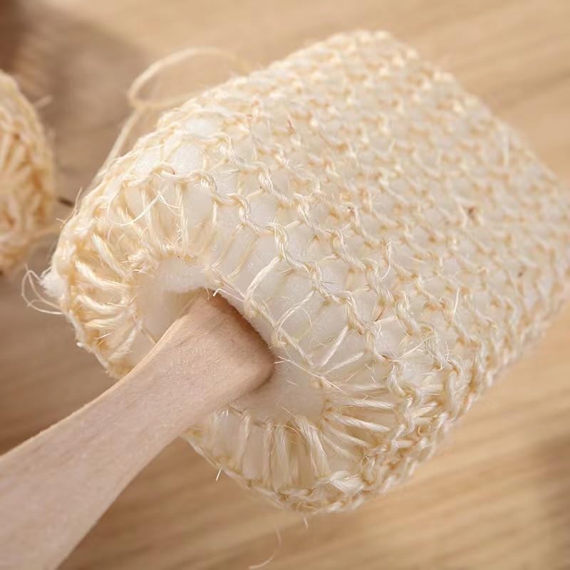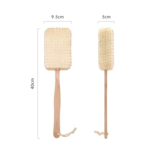 Generic - ليفة استحمام بمقبض خشبي من برايم شوب (عبوة من قطعتين) - اسفنجة استحمام للتقشير وفرشاة تنظيف الجسم للرجال والنساء للبشرة الحساسة