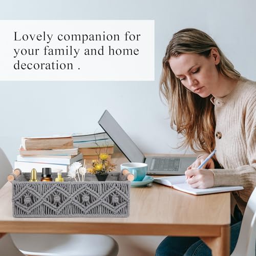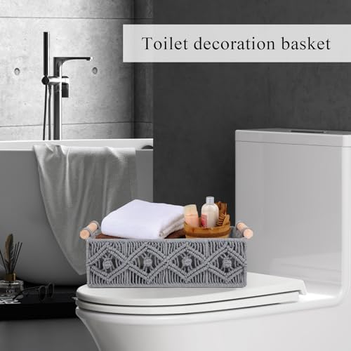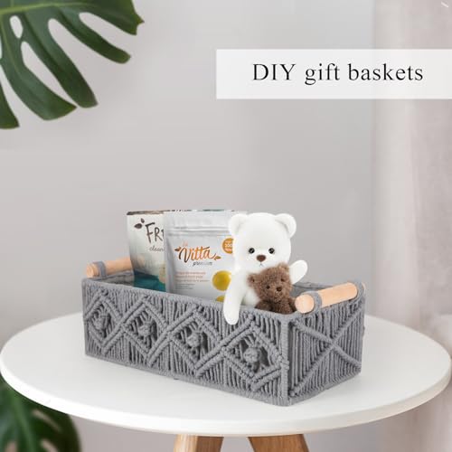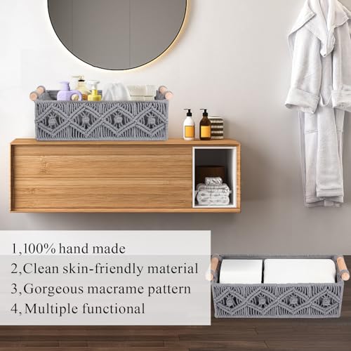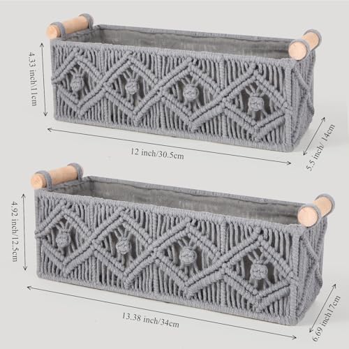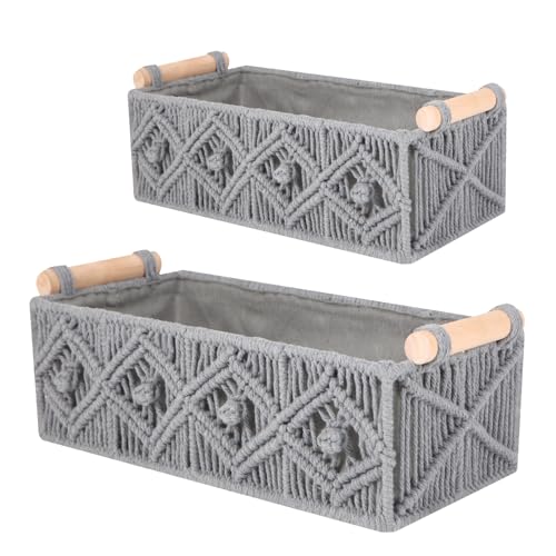 PRIMEPOCH - سلة تخزين من المكرمية بمقابض حمل ونمط بوهيمي من برايم بوتش، مجموعة من 2 قطعة (لون رمادي)