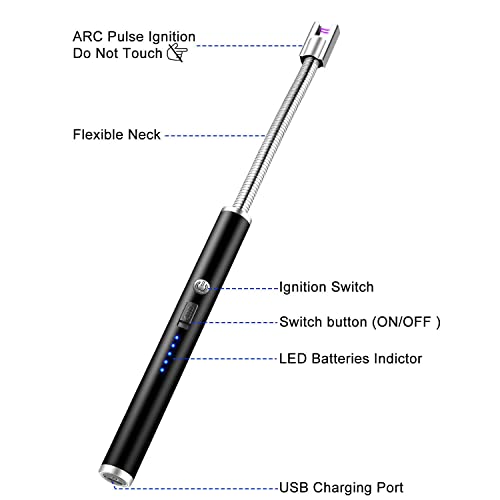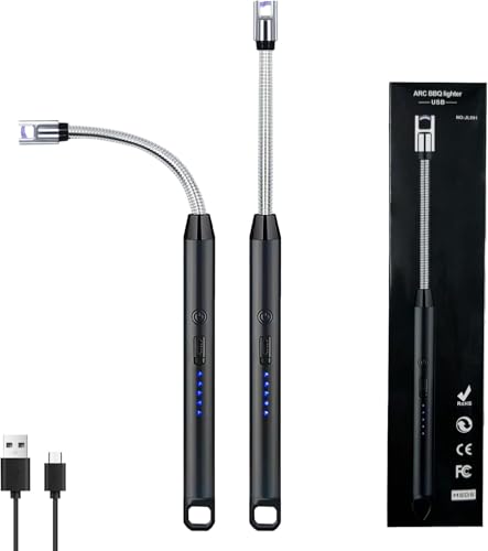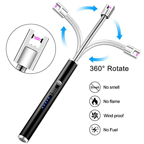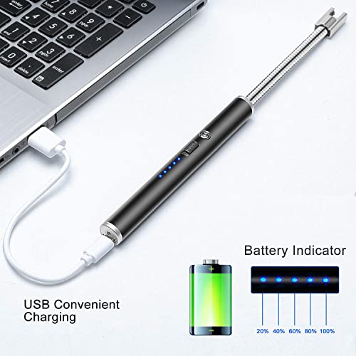 PRIMESKY - ولاعة كهربائية للشموع قابلة لإعادة الشحن من الفولاذ المقاوم للصدأ من برايمسكي، ولاعة بلازما بدون لهب مقاومة للرياح بمنفذ USB، ولاعة مرنة 360 درجة للمطبخ والشواء وموقد الغاز