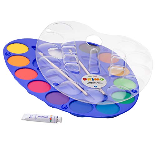 Primo - باليت الوان مائية بريمو زاهية للاطفال من مورو كولور، 25 ملم، صناعة ايطالية (12 لون)، الورق، متعدد، 7.5 ملليلتر