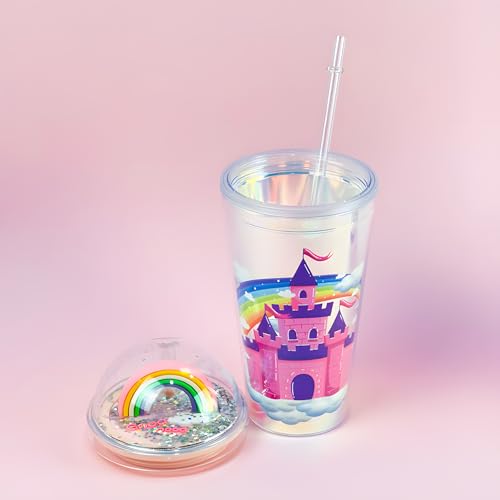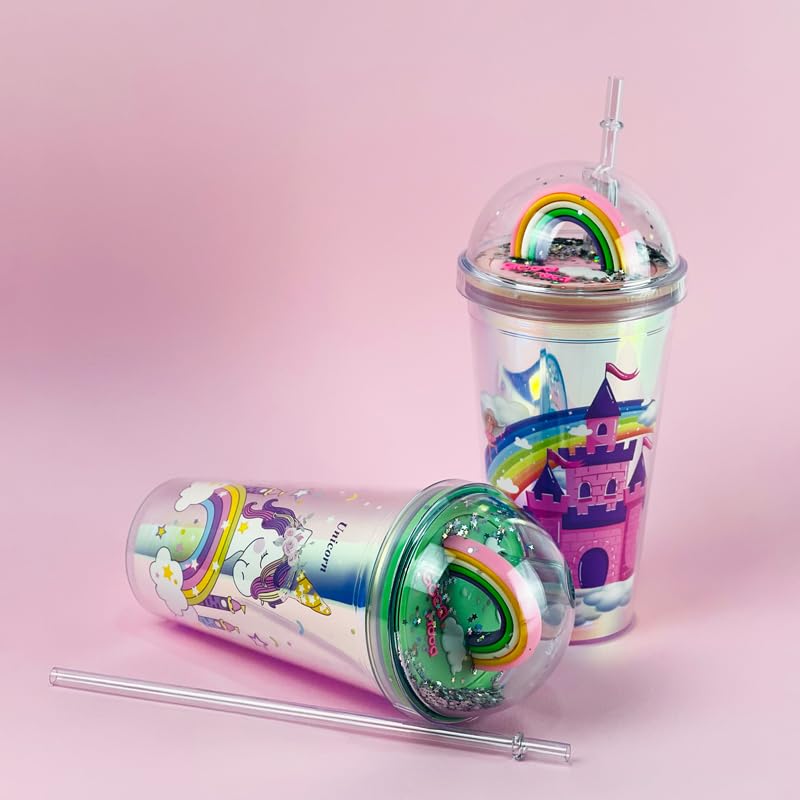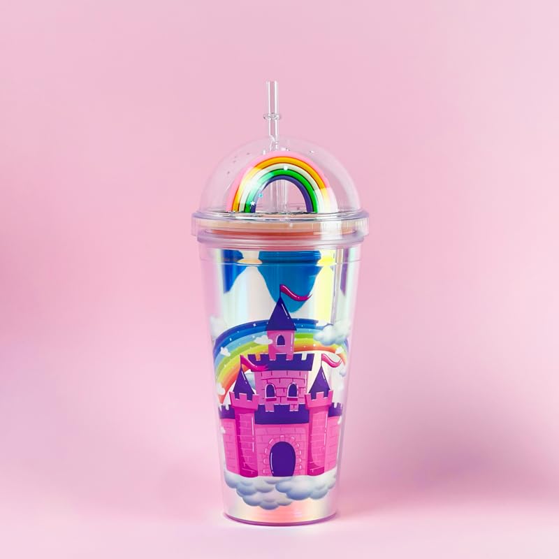 - تصميم مميز: كوب مع غطاء قبة قوس قزح وتصميم قلعة الأميرات الساحر، مثالي للأطفال والمناسبات الخاصة
