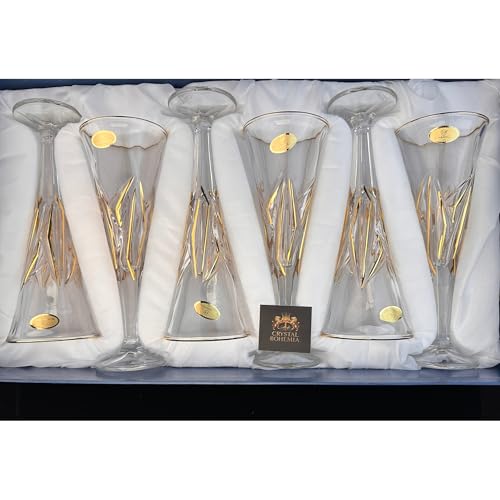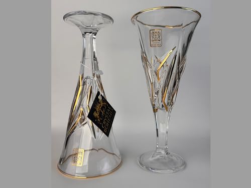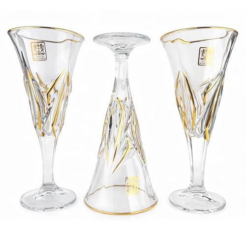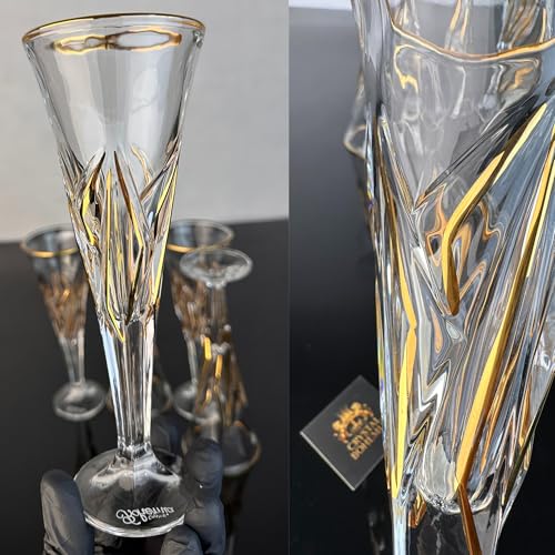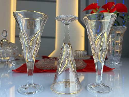 Generic - طقم كاسات برنسيسه كريستال بوهيمي شفاف بماء الذهب – 6 قطع – تصميم كلاسيكي أنيق