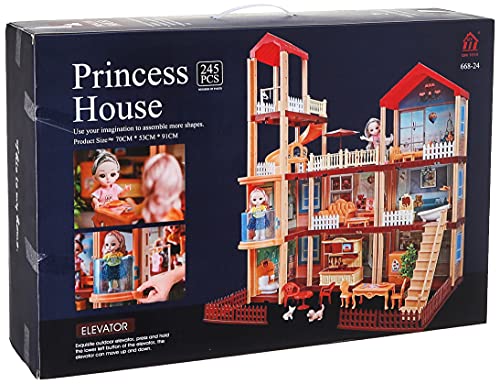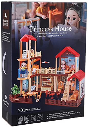 QIXI TOYS - لعبة بيت الاميرة مكونة من 201 قطعة مناسبة لعمر 3 سنوات فما فوق، خشب، متعدد الألوان