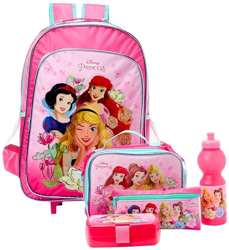 Disney - مجموعة شنط مدرسية اقتصادية 5 في 1 بعجلات بتصميم برينسيس، مقاس 46 سم, ديسكو، من ديزني، بوليستر، متعدد الألوان