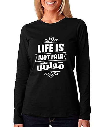 Generic - تيشرت مزين بطبعة عبارة «LIFE IS NOT FAIR» نساء، قطن، ياقة ضيقة