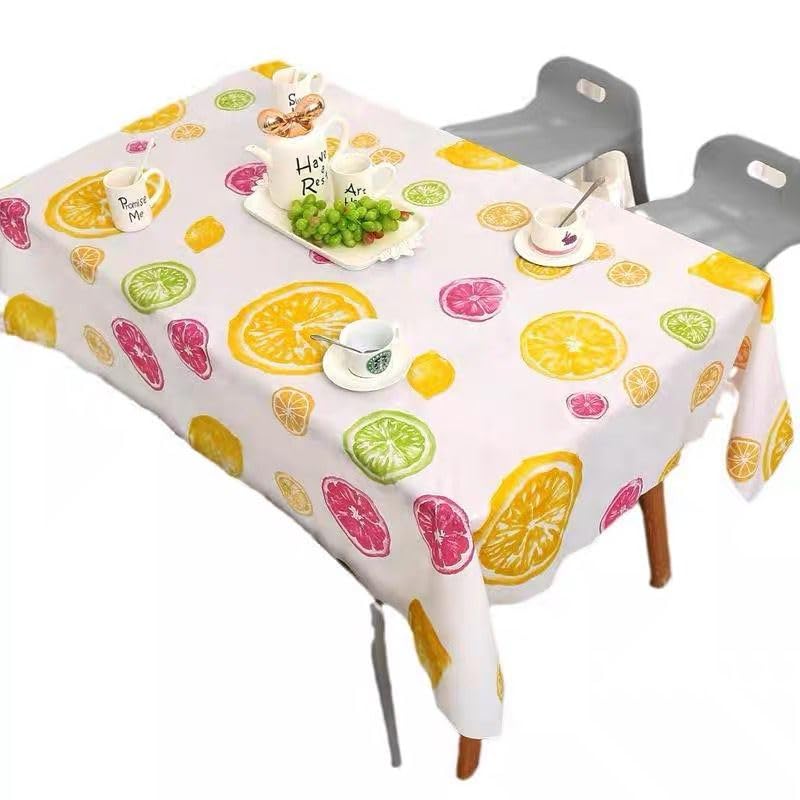 - تصميم نابض بالحياة: مفرش طاولة جميل بموضوع الحمضيات، يتميز بنمط شرائح برتقالية ووردية وليمونية زاهية على خلفية بيضاء، مثالي لإضافة لمسة منعشة ومبهجة إلى مساحة تناول الطعام الخاصة بك.