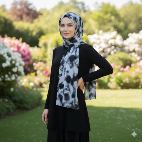 Generic - سكارف حجاب قطني بطباعة مميزة متعددة الألوان بتصميم خفيف الوزن ومزود بمسامات للتهوية، صناعة مصرية، مقاس 75 سم × 1.90 م