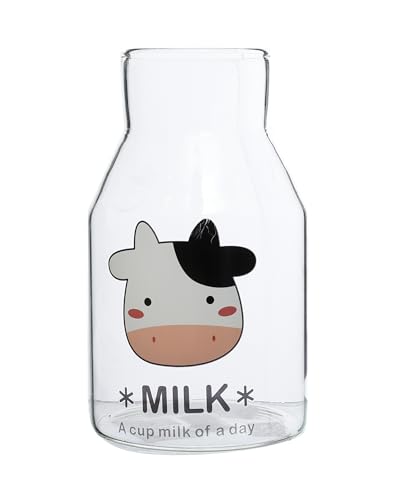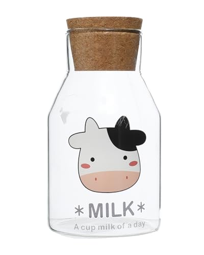 Generic. - زجاجة لبن زجاجية مطبوعة بغطاء من الفلين، بتصميم أنيق وصديق للبيئة لتخزين المشروبات، سعة 600 مل - شفافة